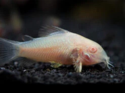 The Albino Aeneus Cory Catfish (Corydoras aeneus) is a variant of the classic Bronze Cory that is native to several countries in South America. It is one of the most popular bottom-dwellers in the aquarium hobby and is a very animated, distinctively marked schooling fish that is perfect for the nano, community, and planted aquarium.