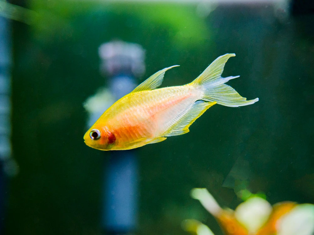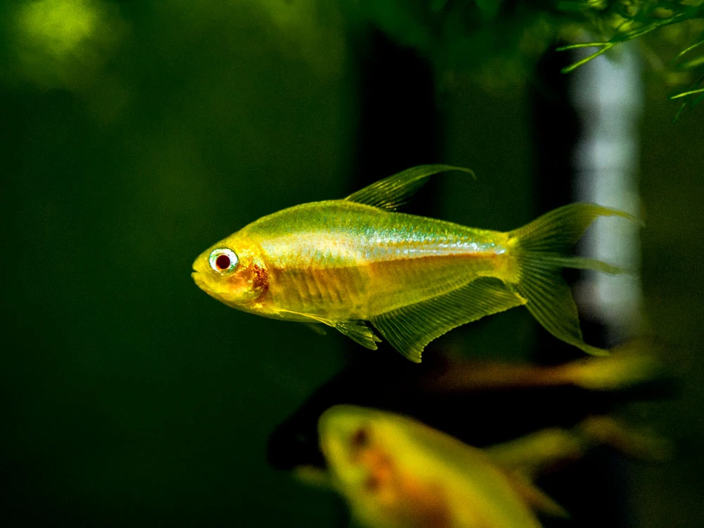 We are proud to offer an extremely rare albino color morph or this exquisite tetra, and its incredible yellow and blue coloration are much more striking than the usual “all-pink” albino!