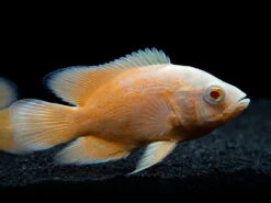 The Albino Red Oscar will thrive in a large aquarium with a sand or gravel substrate and sturdy decor as well as plenty of open swimming space. It does consume some plant matter, so artificial plants are a better choice for decor than live plants (if plants are used at all). Like many cichlids, this species is known to sometimes rearrange decor to its liking, so it is necessary to avoid “avalanches” of decorative stones and driftwood. The Albino Red Oscar is considerably less aggressive than most other medium and large cichlids, but it does have a voracious appetite and will eat any fish or invertebrate that will fit (or nearly fit) in its mouth. Territoriality is typically at its peak during spawning. Due to the eventual adult size of the Albino Red Oscar, it should not be kept with ornamental invertebrates. If spawning is desired, tankmates of other species should be avoided altogether. It should also be noted that the Albino Red Oscar is typically most peaceful with tankmates when it is grown up with them from juvenile age rather than introduced as an adult. Powerful filtration and regular water changes are necessarry for this large species. This fish grows to an impressive size rather quickly, so a large aquarium is necessary at an early stage, even when starting with a juvenile.