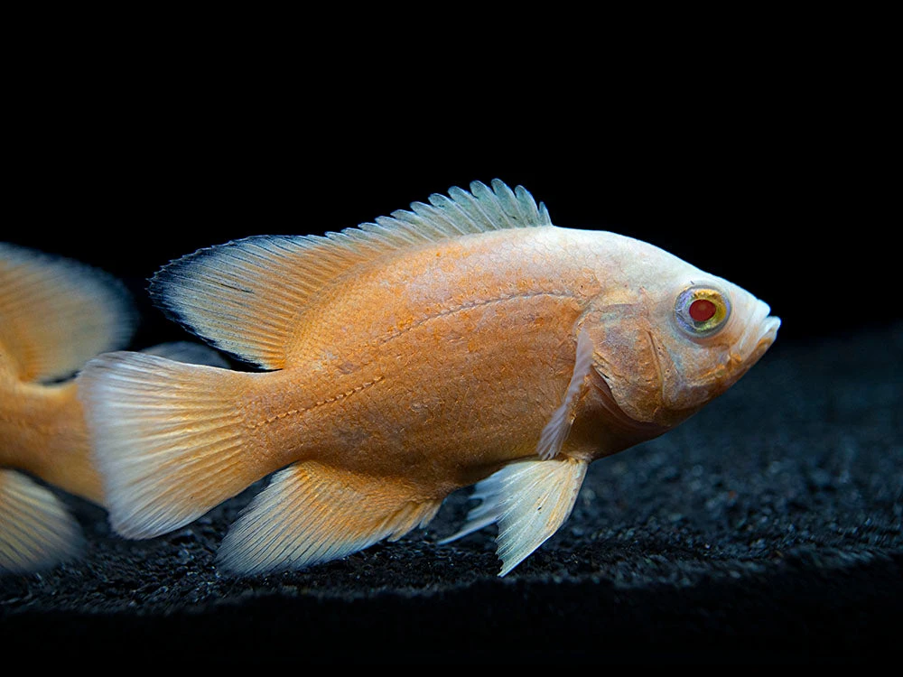 The Albino Red Oscar (Astronotus ocellatus), also known as the Marble Cichlid or Velvet Cichlid, is a large South American cichlid species that needs little to no introduction. It is one of the most popular and beloved fish in the entire aquarium hobby, and with good reason. It has beautiful markings, is extremely hardy and unfussy in every way, and is easily a centerpiece fish in any large aquarium. It grows to a substantial, but manageable size and is one of the most interactive fish when it comes to paying attention to its keeper.