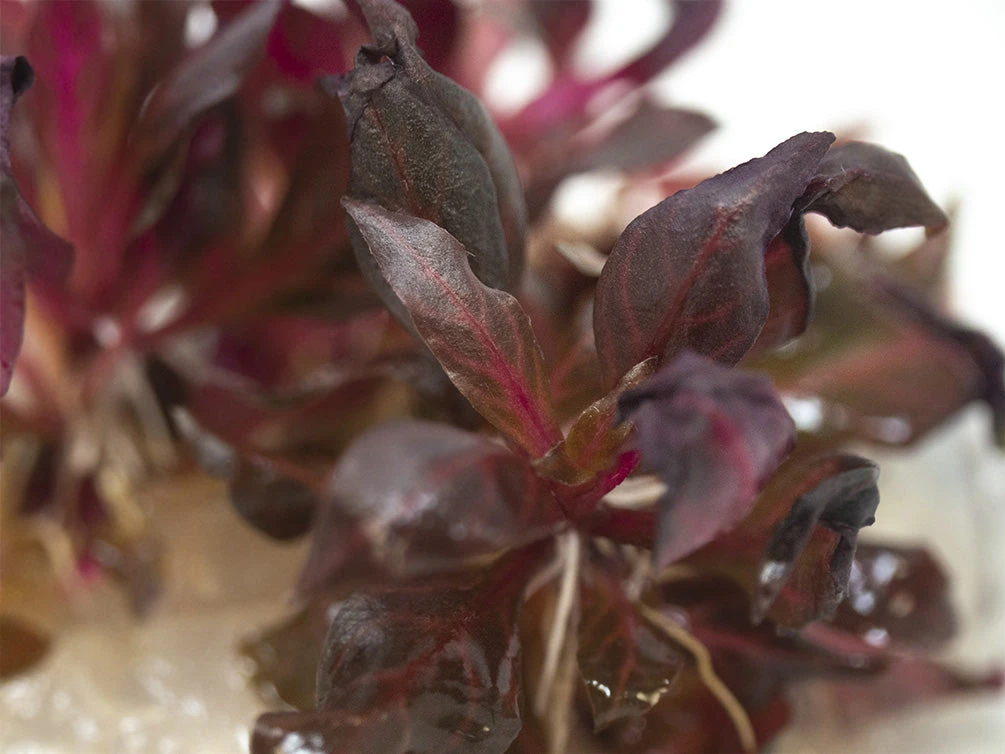 Alternanthera rosanervig is a foreground plant for the serious planted freshwater aquarium. With proper care, this hardy, slow-growing plant can flourish and form a dense colony in aquariums of all sizes, and it is an excellent foreground plant for larger aquariums. Its bright red to maroon coloration is very uncommon among most aquarium plants, and its relatively simple requirements make it an excellent candidate to be a standout plant in the planted aquarium.