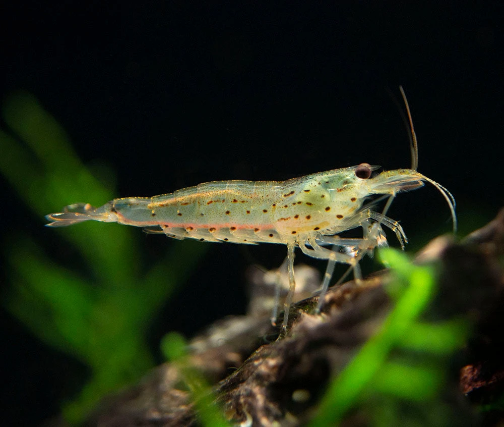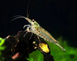 This shrimp is a scavenger and is very useful in planted and nano aquariums. The bulk of its diet is biofilm, algae, and decaying plant matter so it will work diligently to clean up the waste in any aquarium. It feeds constantly, so it displays constant activity. In a less mature aquarium, it should be fed high quality flake and mini pellet dry foods with high algae/spirulina/plant content. Providing natural botanicals for shrimp to feed on will not only help provide the water with natural tannins which can help boost shrimp immune systems, as they decay the shrimp will feed on the biofilm they create.