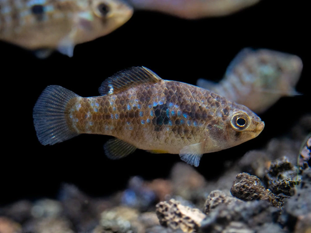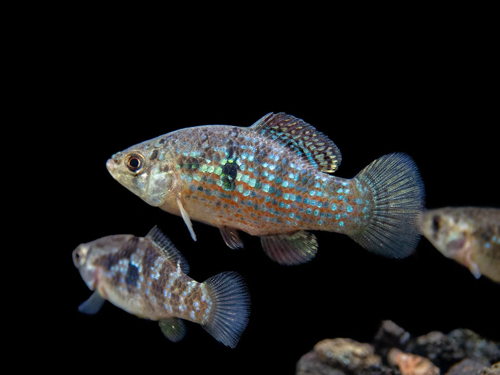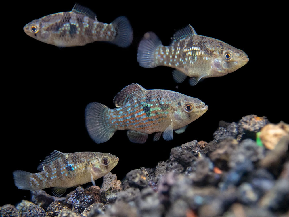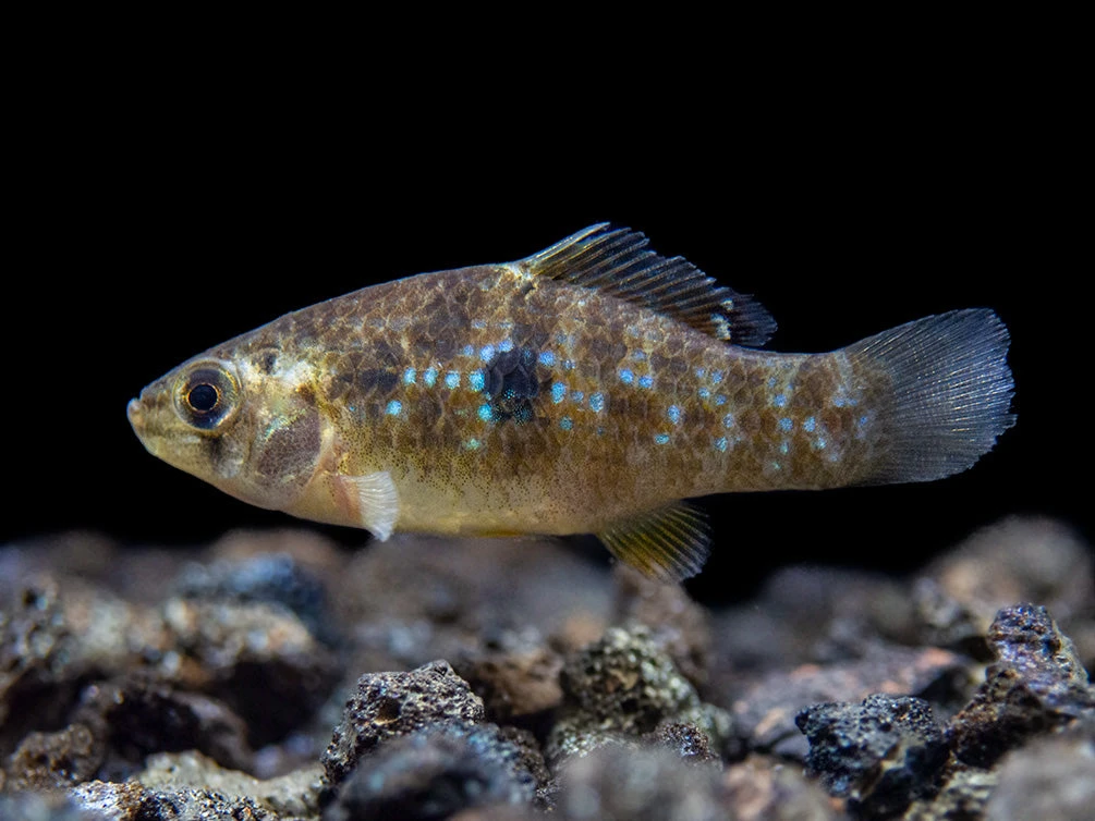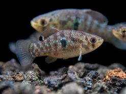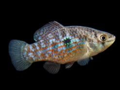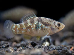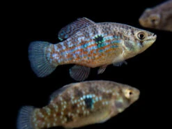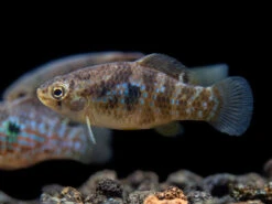 The American Flagfish Killifish (Jordanella floridae) is a colorful, peaceful fish that is native to much of Florida. This generally peaceful, small species displays a great variety of vibrant coloration, particularly when in breeding condition. Males are the most colorful, but females are typically colorful in their own right. In addition to being an excellent display fish in the community and planted aquarium, the American Flagfish is also an effective algae eater, and it is one of the few species that will eat pesky black beard/brush algae! In an outdoor pond, it is very useful for algae control as well as for eating insect larvae.