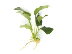 The leaves of this plant are large, pointed at the ends, and leathery in texture. Because the leaves are very tough, they are usually not eaten by fish or other plant-eating critters. As with all plants in the Anubias family, Dwarf Anubias grows from a rhizome, so it should not be planted in the substrate.