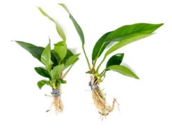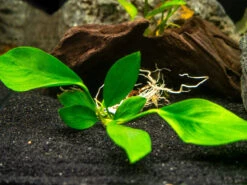 Anubias Nancon (Anubias barteri “Nana” x Anubias afzelii “Congensis”) is an Anubias hybrid that was developed by aquarist Bob Gasser and has been cultivated in nurseries. It has relatively long and pointed leaves as well as compact growth, which is distinctive for this variety. Like virtually all Anubias plants, it is extremely hardy, undemanding, and can thrive in a variety of water parameters.