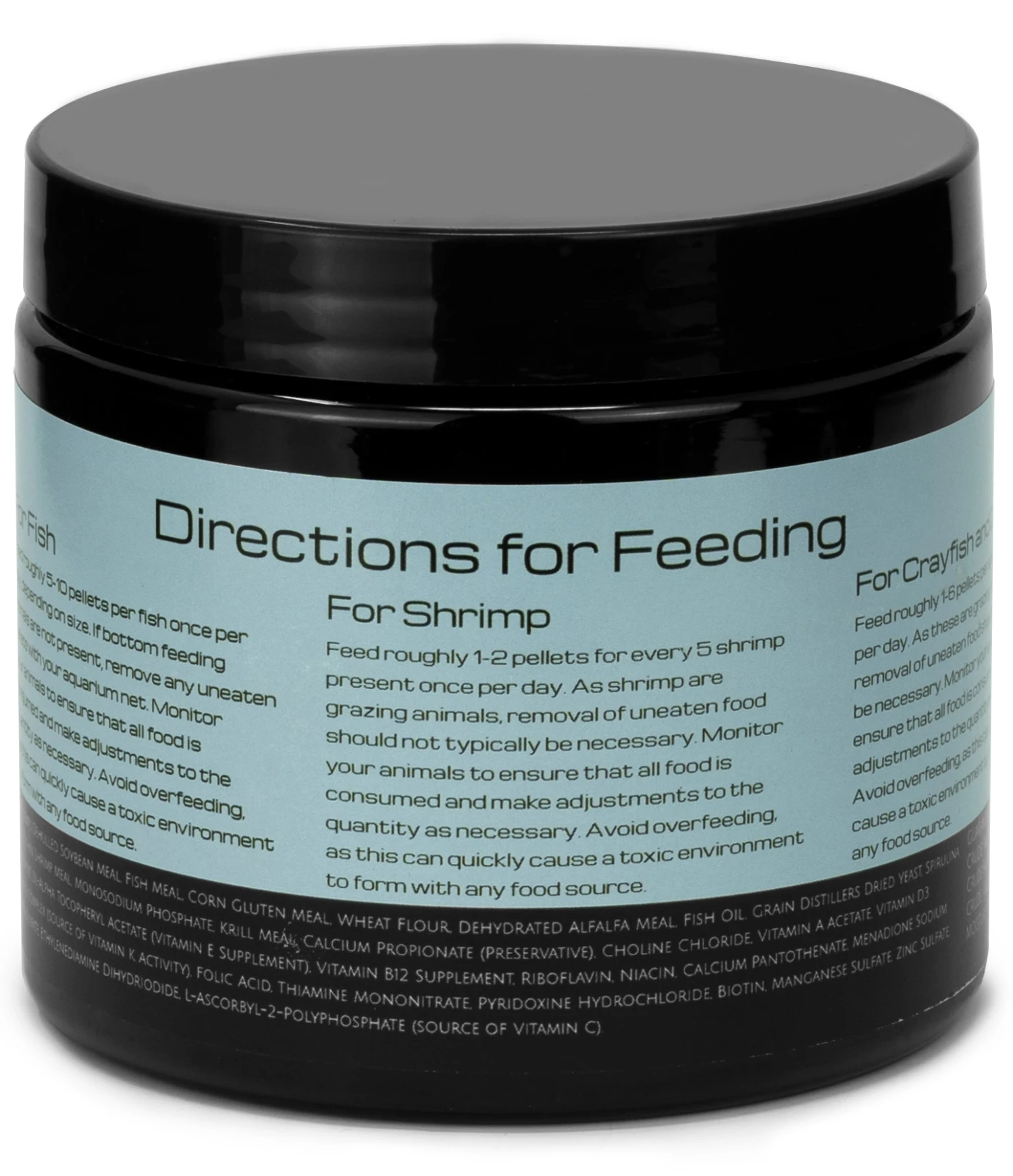 Dehulled Soybean Meal, Fish Meal, Corn Gluten Meal, Wheat Flour, Dehydrated Alfalfa Meal, Fish Oil, Grain Distillers Dried Yeast, Algae Meal-Dried (Spirulina), Soy Lecithin, Shrimp Meal, Monosodium Phosphate, Krill Meal, Calcium Propionate (Preservative), Choline Chloride, L-Ascorbyl-2-Polyphosphate (source of Vitamin C), Manganese Sulfate, Zinc Sulfate, Copper Sulfate, Ethylenediamine Dihydriodide, Vitamin A Acetate, Vitamin D3 Supplement, dl-Alpha Tocopheryl Acetate (Vitamin E Supplement), Vitamin B12 Supplement, Riboflavin-5-Phosphate, Niacin, d-Calcium Pantothenate, Menadione Sodium Bisulfite Complex (source of Vitamin K Activity), Folic Acid, Thiamine Mononitrate, Pyridoxine Hydrochloride, Biotin.