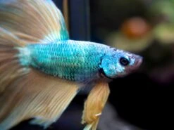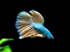 The Mustard Gas Halfmoon Betta is a breathtaking color variety with a blue body and bright yellow fins!