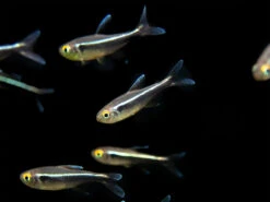 While not a picky eater, the Black Neon Tetra will thrive and remain very colorful on a varied diet of meaty foods. High-quality flake food, pellets, and frozen or freeze-dried tubifex and bloodworms will all be readily accepted.
