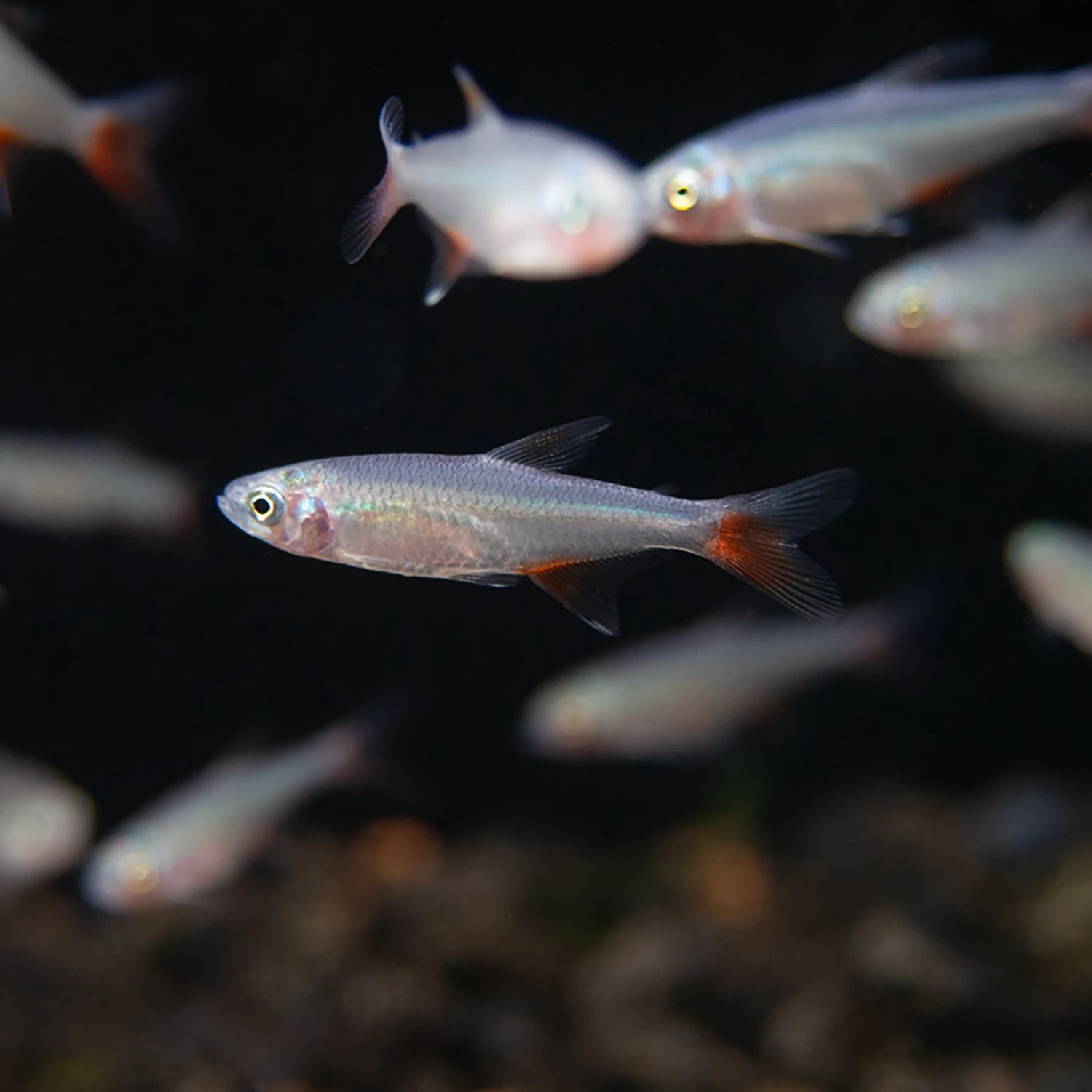 Striking Red Fins: The vivid red fins against their silver bodies create a stunning visual contrast, adding a touch of elegance to any aquarium.