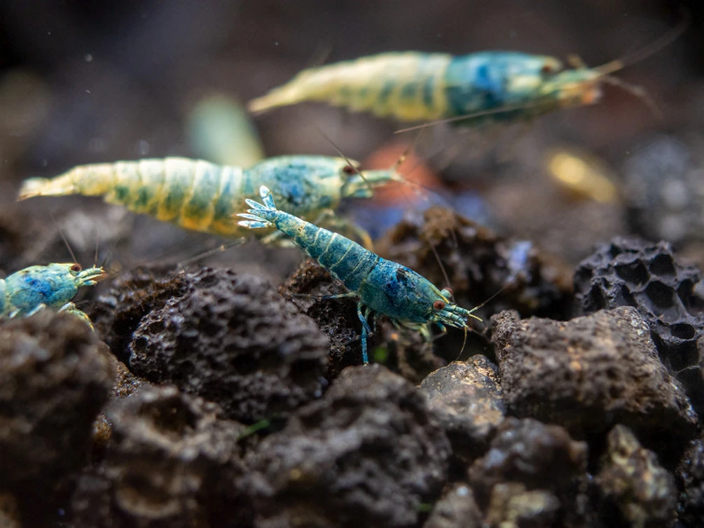 This super colorful Bee Shrimp variant is an excellent addition to the planted or nano aquarium and will not interbreed with Neocaridina species. Its bright blue and white coloration is sure to make it the highlight of any aquarium.