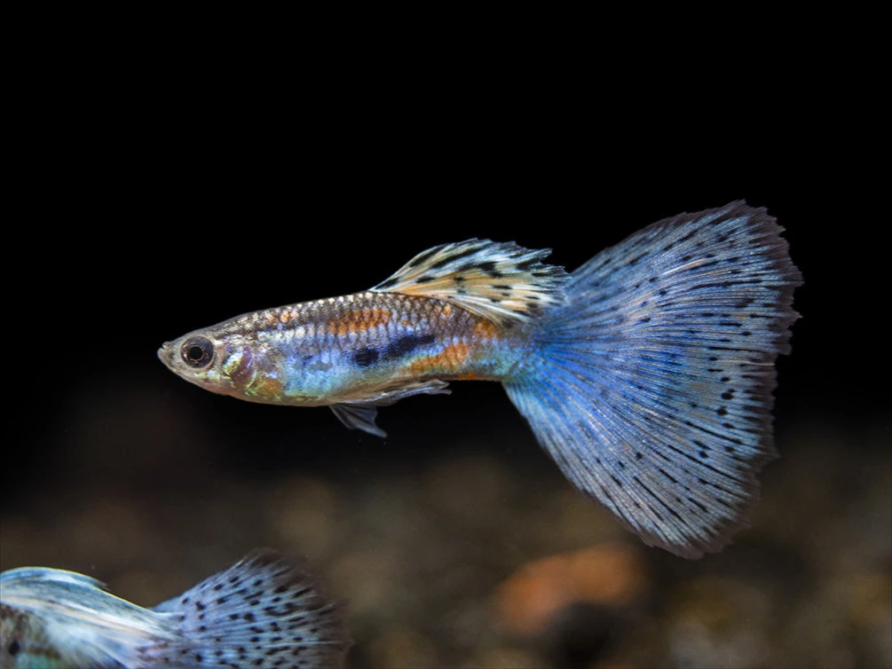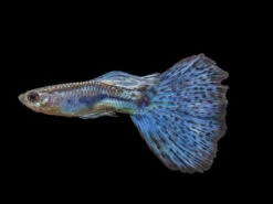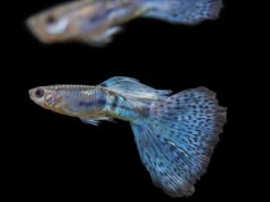 While not a picky eater, the Blue Grass Tail Guppy will thrive and remain very colorful on a varied diet of meaty foods. High-quality flake food, pellets, and frozen or freeze-dried tubifex and bloodworms will all be readily accepted.