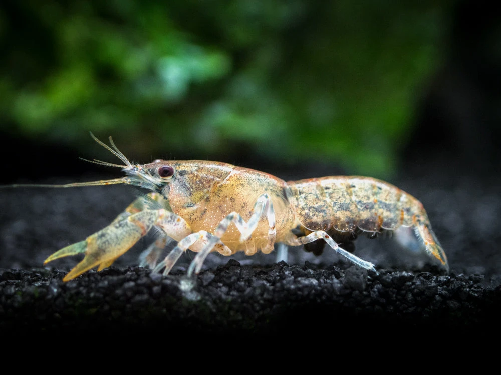 The Cajun Dwarf Crayfish (Cambarellus shufeldtii) is a less common species that is an excellent candidate for the nano or planted aquarium. This miniature freshwater crayfish features an outgoing personality and unique tan and black coloration, often along with green mottling. Dwarf crayfish are also known as mini lobsters, although true lobsters do not exist in freshwater. The Cajun Dwarf Crayfish is very similar to the Orange CPO Crayfish in appearance and behavior, aside from the obvious difference in color.