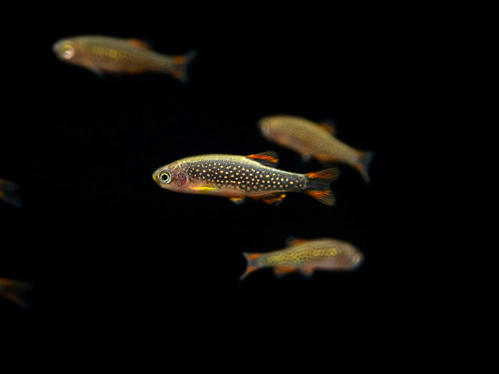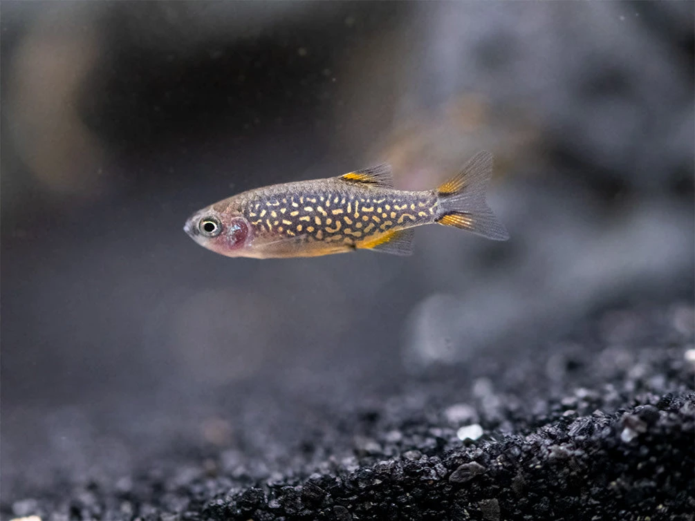 Our Celestial Pearl Danios are tank-raised, and we are one of the only suppliers in the United States that offers tank-raised Celestial Pearl Danios. We ship these fish out as juveniles that are less than an inch in size, and therefore do not yet possess the gorgeous coloration that they will have as adults. As young fish, they show some indication of a striped pattern, which eventually transforms into the iridescent dots this fish is known for. So be rest assured, once these fish mature, they will make a dazzling addition to any aquarium!