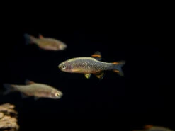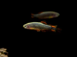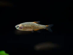 The Celestial Pearl Danio is peaceful and easy to care for, as long as they live in stable water parameters with good water quality. They do best in tanks that have plant, rock, or driftwood that provides them with cover. We sell these fish in a school of 6 because they are known to do best in groups of 6 or more. Celestial Pearl Danios will form schools with each other and with all other types of danios, forming rainbows of motion throughout your aquarium!