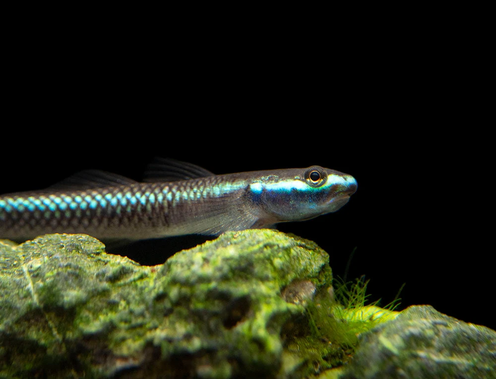 Most small rasboras, tetras, hillstream loaches, and other small, peaceful fish are good tankmates for the Cobalt Blue Dwarf Goby. Due to its small size and diet, the Cobalt Blue Dwarf Goby can also be kept with dwarf shrimp, although it might eat a few of their fry. Dwarf shrimp are particularly good tankmates in larger aquariums where they can find areas of lower water flow. Peaceful bottom-dwelling fish are also a possibility, but care must be taken to make sure that the passive Cobalt Blue Dwarf Goby is not outcompeted for food. Female gobies will often congregate together, even with other Stiiphodon goby species. Males seem to be able to differentiate between females of different species during courtship behavior.