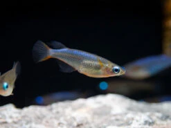 While not a picky eater, the Daisy’s Blue Ricefish will thrive and remain very colorful on a varied diet of mostly omnivorous foods. High-quality flake food, pellets, and live, frozen, or freeze-dried Artemia, microworms, Tubifex, and finely chopped bloodworms will all be readily accepted. However, the Daisy’s Blue Ricefish also requires some vegetable matter in its diet. It will not bother aquarium plants.