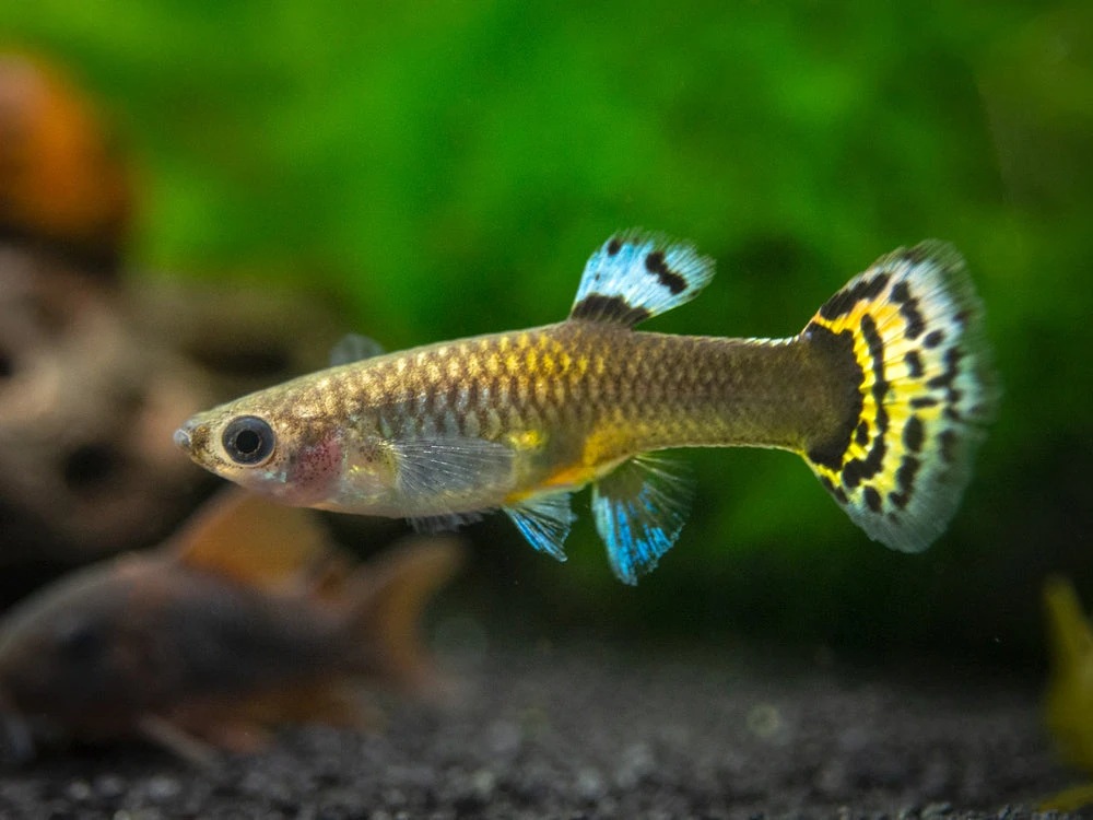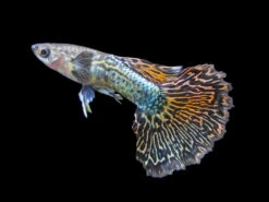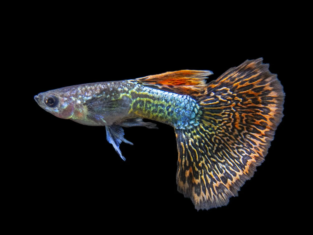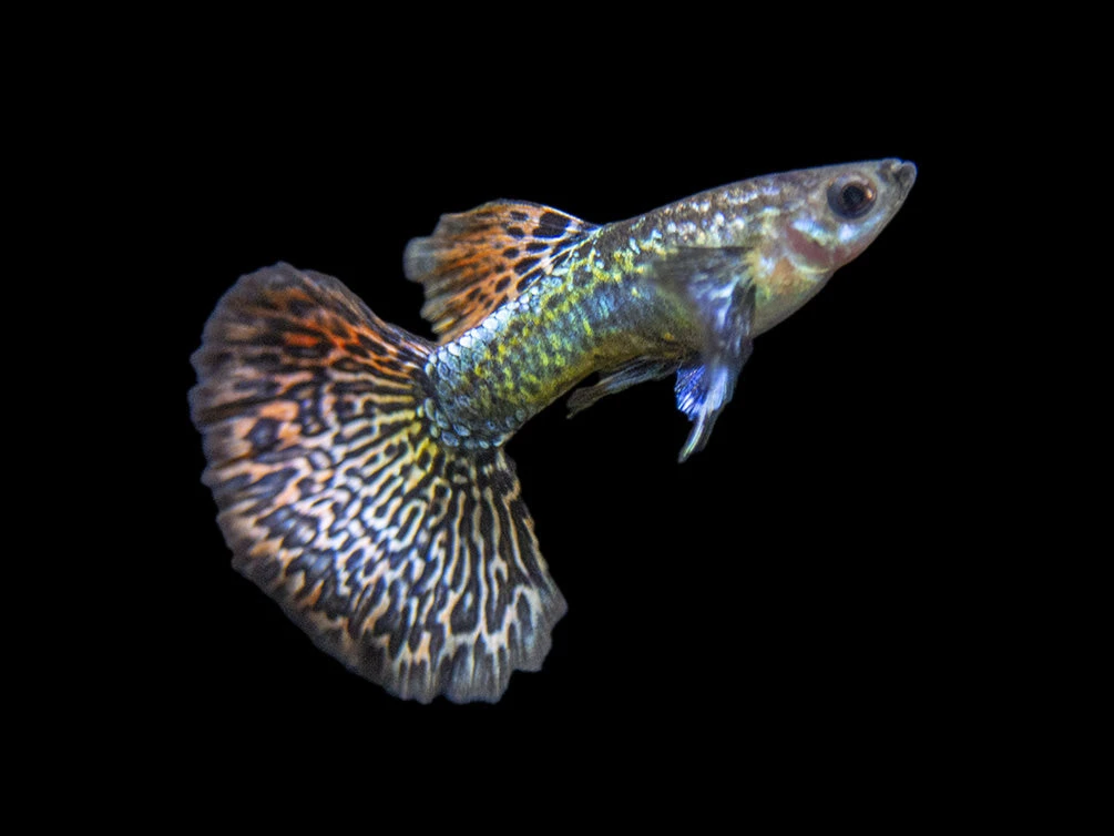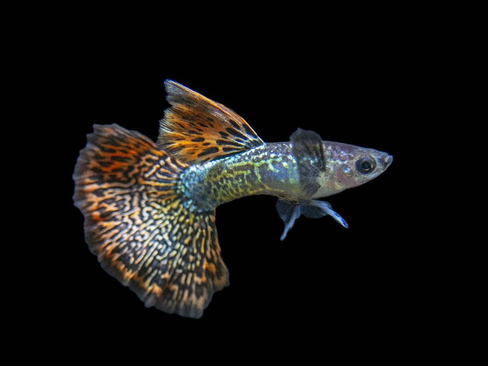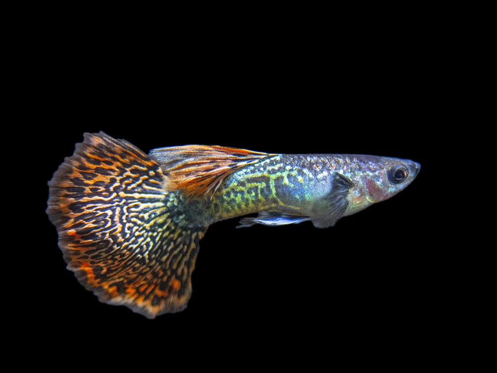While not a picky eater, the Dragon Mosaic Guppy will thrive and remain very colorful on a varied diet of meaty foods. High-quality flake food, pellets, and frozen or freeze-dried tubifex and bloodworms will all be readily accepted.
