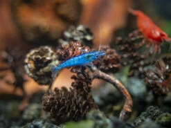 Add some color and excitement to your aquarium with Dream Blue Velvet Shrimp! These shrimp look great, clean your tank, and are a blast to watch! Dream Blue Velvet Shrimp are very similar to the prolific Red Cherry Shrimp, but their coloration is a deep solid blue. They are very active and breed very quickly. A colony of these shrimp works as a very effective cleaning crew for your aquarium, cleaning up algae and waste.