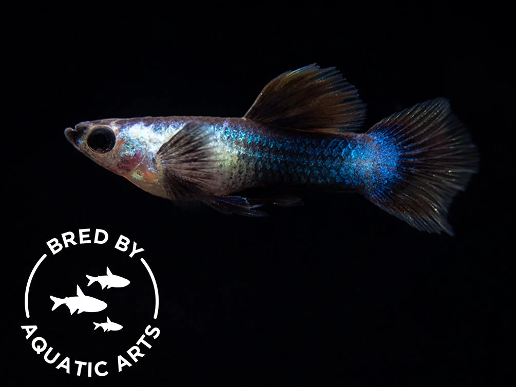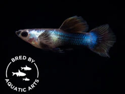 This whimsical guppy will brighten your day! It has a shortened body and has large wavy fins. We are proud to offer specimens bred in house at Aquatic Arts!