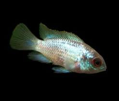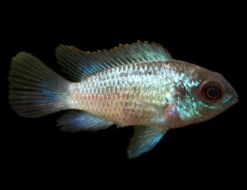 The Electric Blue Acara Cichlid (Andinoacara pulcher hybrid) is an extremely colorful hybrid of the Blue Acara Cichlid. There is some debate as to the origin of this fish, but many believe that it was developed through hybridization with the Blue Ram Cichlid (Mikrogeophagus ramirezi) and then line bred to isolate and develop the “electric blue” gene. Whatever its origin, this very beautiful fish will breed with its own kind and will produce more offspring with the same coloration.