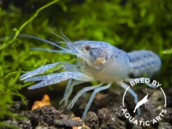 One of the most colorful freshwater creatures you’ll ever find, the notorious Electric Blue Crayfish has to be seen to be believed! The Electric Blue Crayfish is and has been one of our most popular specimens ever since our beginnings. This crayfish is also commonly known as the Electric Blue Freshwater Lobster, though true lobsters do not exist in freshwater. This species originates from the Southeastern United States, but all of our specimens are tank-raised. Like most Procambarus species, the Electric Blue Crayfish reaches maturity very quickly and breeds easily in the aquarium. In fact, many of our specimens have bred in our tanks at our facility!
