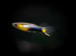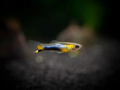 The French Blue Star Endler’s Livebearer (Poecilia wingei “Blue Star”) is an extremely colorful, peaceful fish whose small size makes it absolutely perfect for the nano or planted aquarium. It is almost entirely blue and red, which sets it apart from many endler varieties. This fish is very similar to the larger common guppy (Poecilia reticulata). It is very hardy, especially for such a small fish.