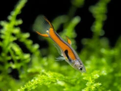 The French Blue Star Endler’s Livebearer (Poecilia wingei “Blue Star”) is an extremely colorful, peaceful fish whose small size makes it absolutely perfect for the nano or planted aquarium. It is almost entirely blue and red, which sets it apart from many endler varieties. This fish is very similar to the larger common guppy (Poecilia reticulata). It is very hardy, especially for such a small fish.