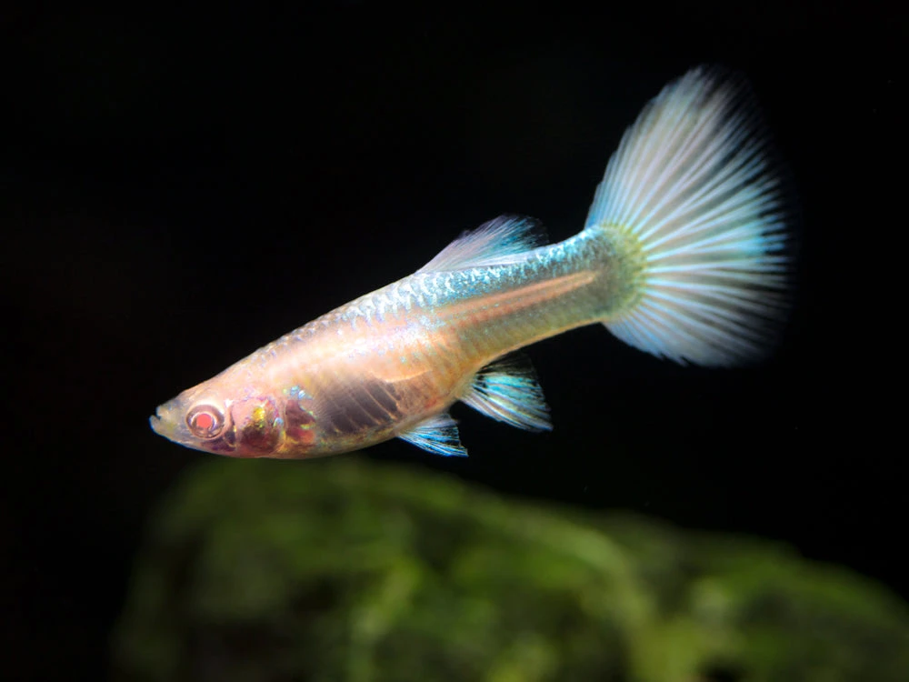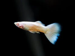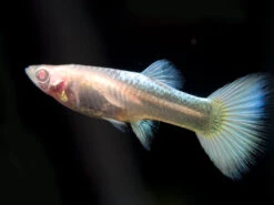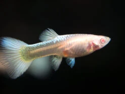 While not a picky eater, the Full Platinum Albino Guppy will thrive and remain very colorful on a varied diet of meaty foods with supplementation of some nutritious plant matter. Â High-quality flake food, pellets, and frozen or freeze-dried foods will all be readily accepted. Â