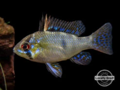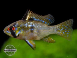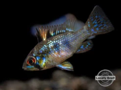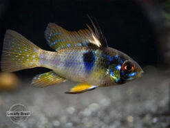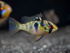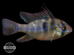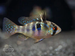 The German Blue Ram Cichlid (Mikrogeophagus ramirezi) is a very colorful dwarf species that displays a variety of blue, yellow, red, and black coloration. Rams and other dwarf cichlids are very popular among aquarists due to their vivid coloration, small size, and interesting personalities. Dwarf cichlids are typically much less aggressive than most larger cichlids.