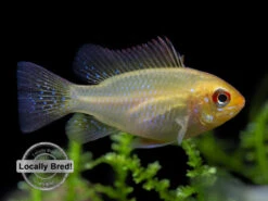 This beautiful dwarf cichlid is a striking gold/yellow variant of the ever-popular German Blue Ram! These specimens were bred locally just a few minutes from our facility.