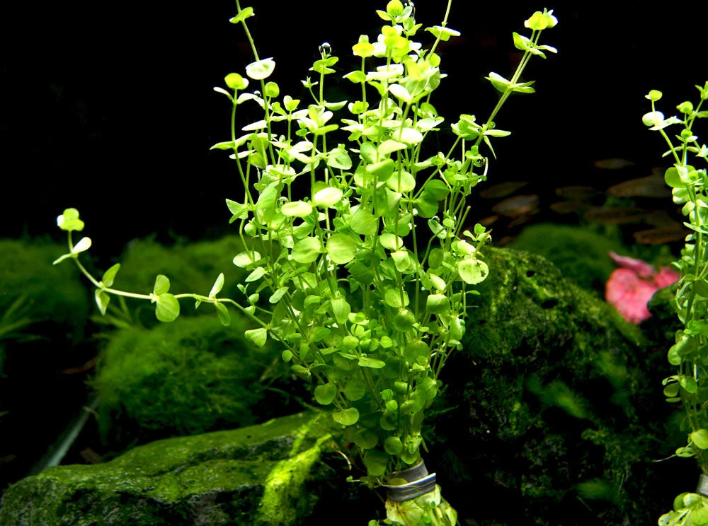Giant Baby Tears (Micranthemum umbrosum), is a charming stem plant that grows quickly into a dense bush. It is particularly beautiful in appearance with its tiny, delicate, and round leaves that resemble shamrocks, as well as its bright green coloration. This small stem plant is very versatile and is ideal for the foreground or background of any planted aquarium. This plant is excellent for aquariums that house fish, snails, and dwarf shrimp, as it provides biofilm, hiding places, and security for all aquarium inhabitants.
