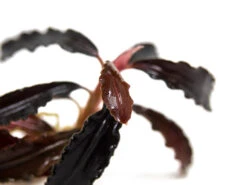 Godzilla Buce Plant (Bucephalandra sp., “Godzilla”) is a very colorful variant of the extremely popular Bucephalandra group. It is a very hardy plant that can be grown emersed or submerged in the aquarium, terrarium, and paludarium. It requires only low to moderate lighting and can thrive in a variety of water parameters. With proper care, Godzilla Buce Plant will grow at a slow to moderate rate. The care of Buce plants is similar to Anubias and Cryptocoryne species. Also, like Anubias, Buce plants are rhizome plants that attach to and grow on hard surfaces. This plant attaches particularly well to rocks, but can also grow very well on driftwood and other surfaces. If planted on the substrate, Buce plants should be only partially embedded in the substrate with the rhizome exposed. If the rhizome is buried, it is prone to rot.
