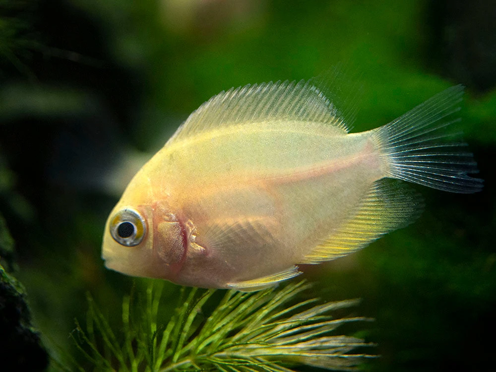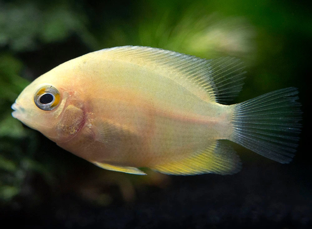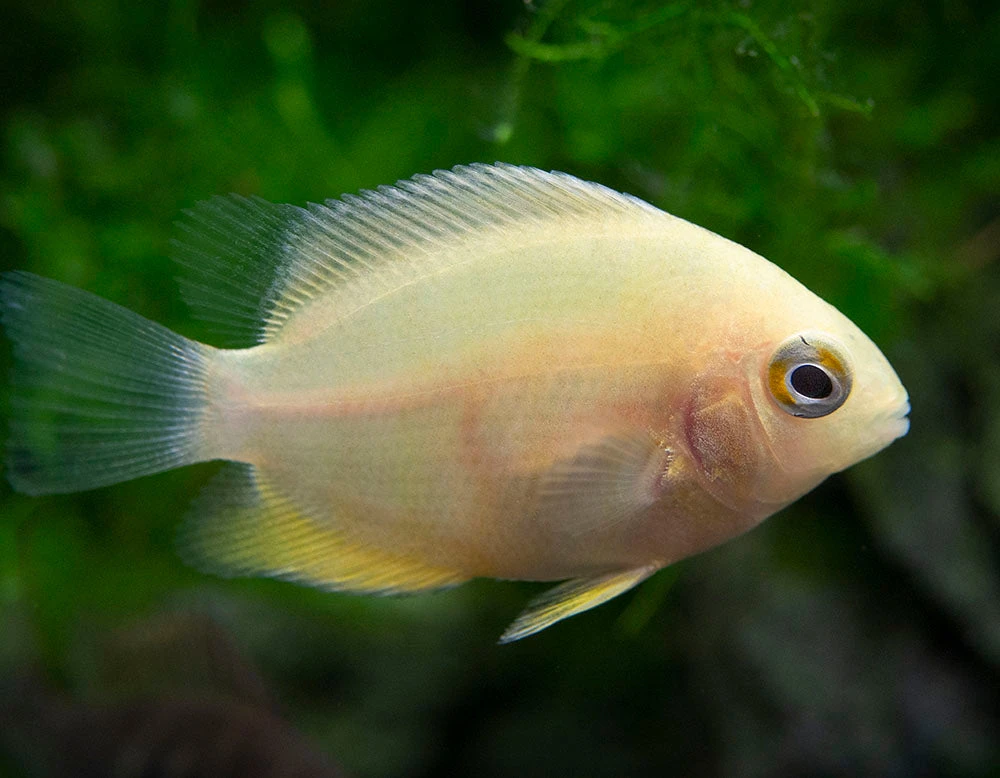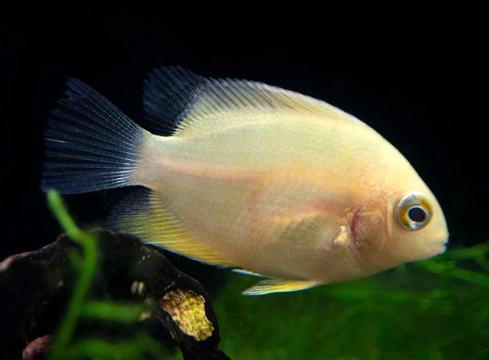 Feeding is simple for the unfussy Gold Severum. High-quality dry, frozen, and live meaty foods will all be readily accepted. Supplemental vegetable matter is also required. Quality and variety are the keys to a diet that will ensure that this fish maintains optimal health and coloration.