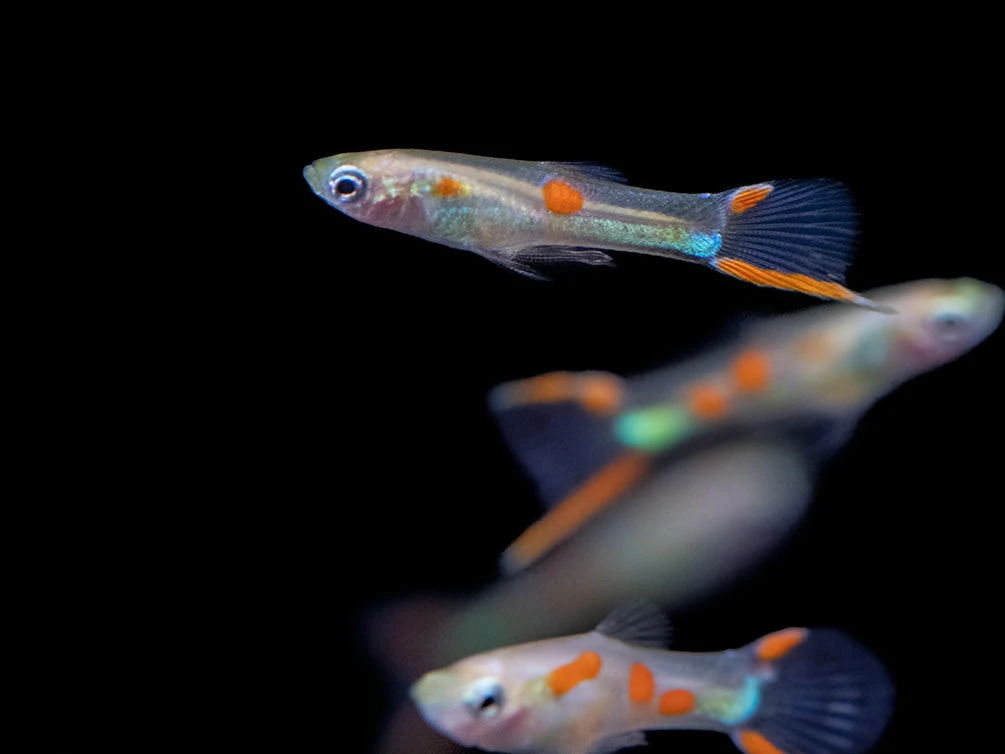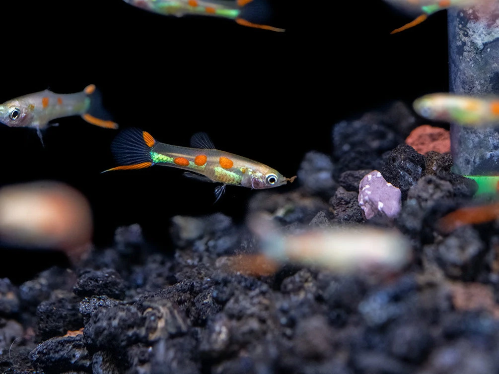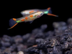While not a picky eater, the White Peacock Endler’s Livebearer will thrive and remain very colorful on a varied diet of meaty foods supplemented with spirulina or other nutritious vegetable matter.  High-quality and flake food, pellets, and live, frozen, or freeze-dried Tubifex and finely chopped bloodworms will all be readily accepted. Â