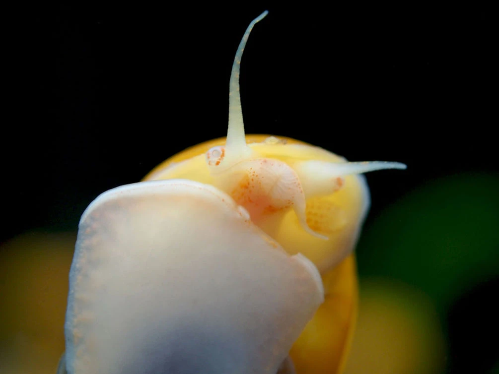 Mystery Snails are generally much more active and display more playful behavior than other types of freshwater snails. They are almost constantly scaling the walls of the aquarium, extending their antennae in search of food. They will climb up to the water line in to breathe air, so it’s a good idea to make sure the water line in your aquarium isn’t too high. When a Mystery Snail reaches the top of a wall or structure, it will often let go of the wall and glide rapidly downward until it crashes into plants or into the substrate below, often eliciting a “Weeee!” sound from any witnesses.