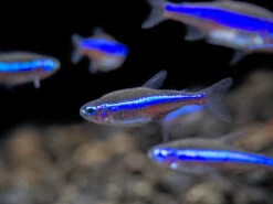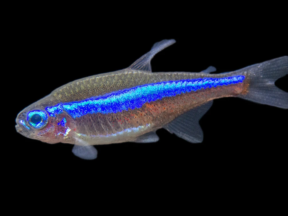 The Green Neon Tetra is a wholly different species than its close relatives and bosts vibrant blue-green coloration! We have rare tank-bred specimens!