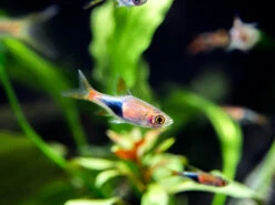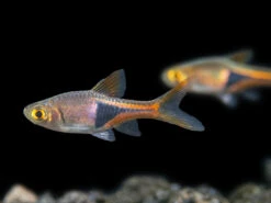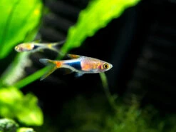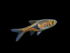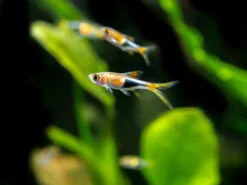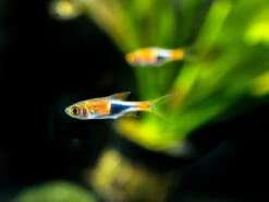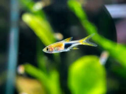 The Harlequin Rasbora is easy in care as long as it has stable water parameters with good water quality. Like all rasboras and danios, this fish is completely peaceful and totally safe to keep with other fish (as long as the other fish are peaceful as well), snails, shrimp, and live plants. While it is safe with adult shrimp, it might prey on shrimp fry. The Harlequin Rasbora is a schooling fish that can only thrive in groups of at least 6-8 specimens. Keeping this fish in a large school will ensure its most natural behavior, especially top coloration from males as they compete for the attention of females. When this fish is healthy and placed in a well-cycled and densely planted aquarium, it is fairly likely that it will spawn, and you may see fry start to appear.
