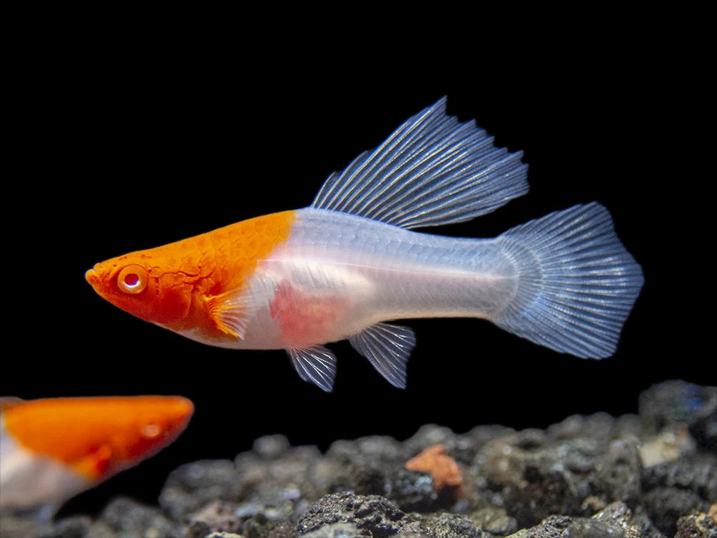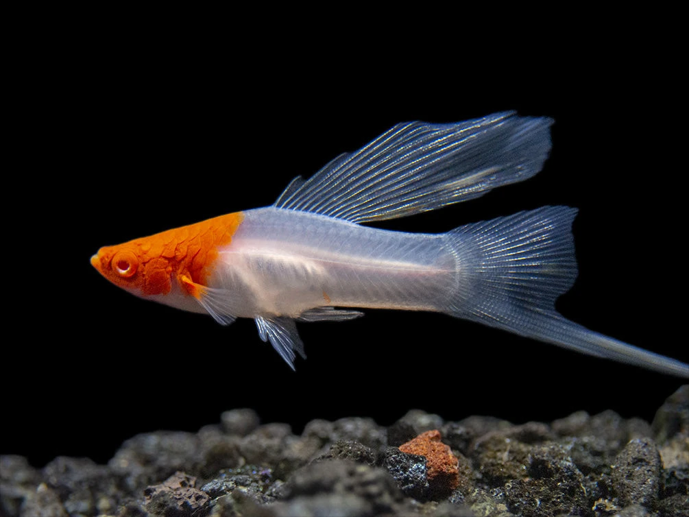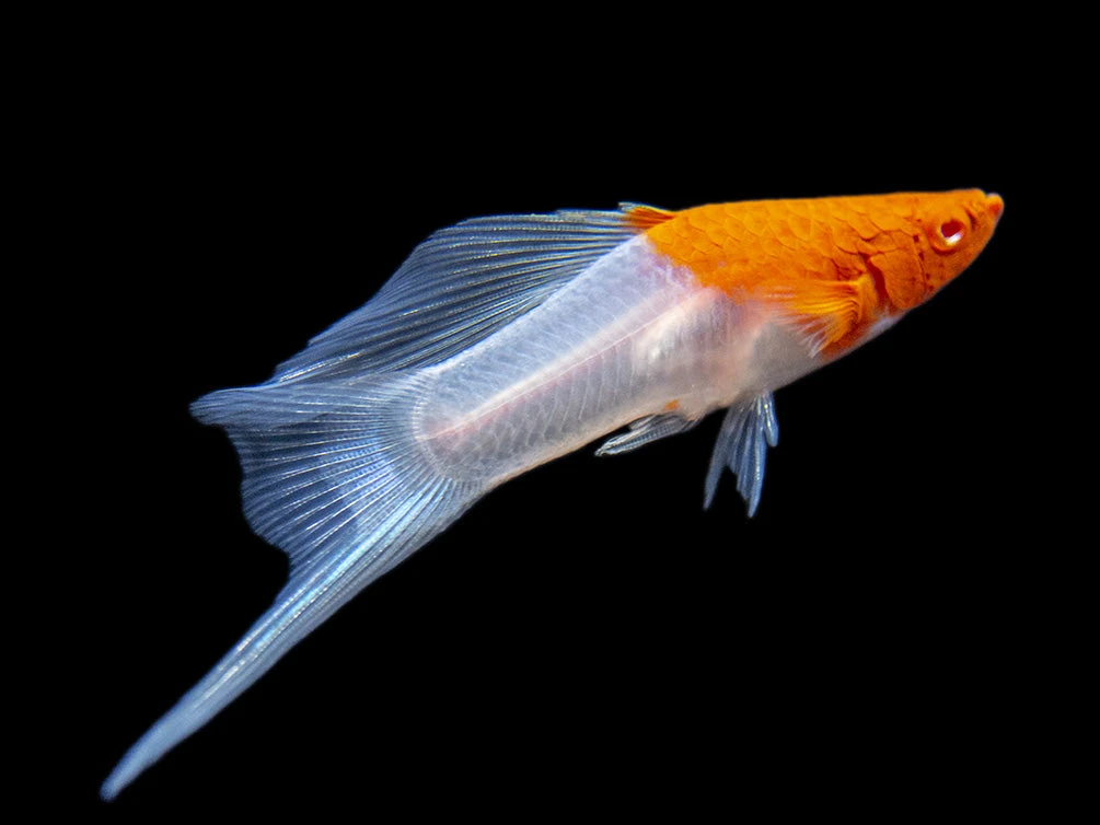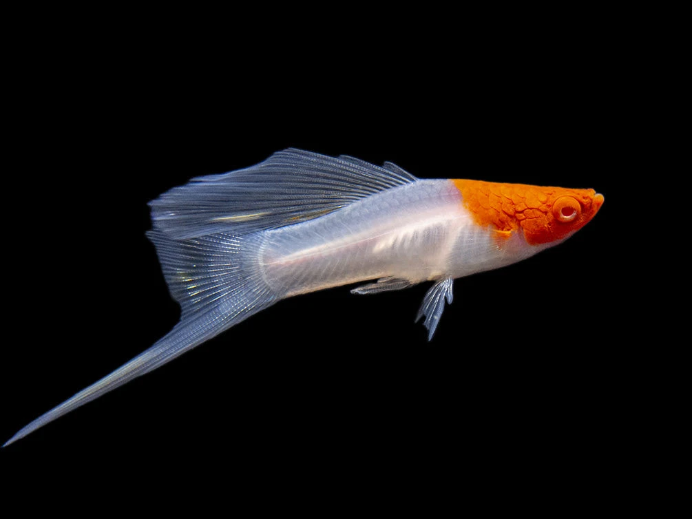 This high-end adult kohaku swordtail displays an incredible splash of orange and white coloration!