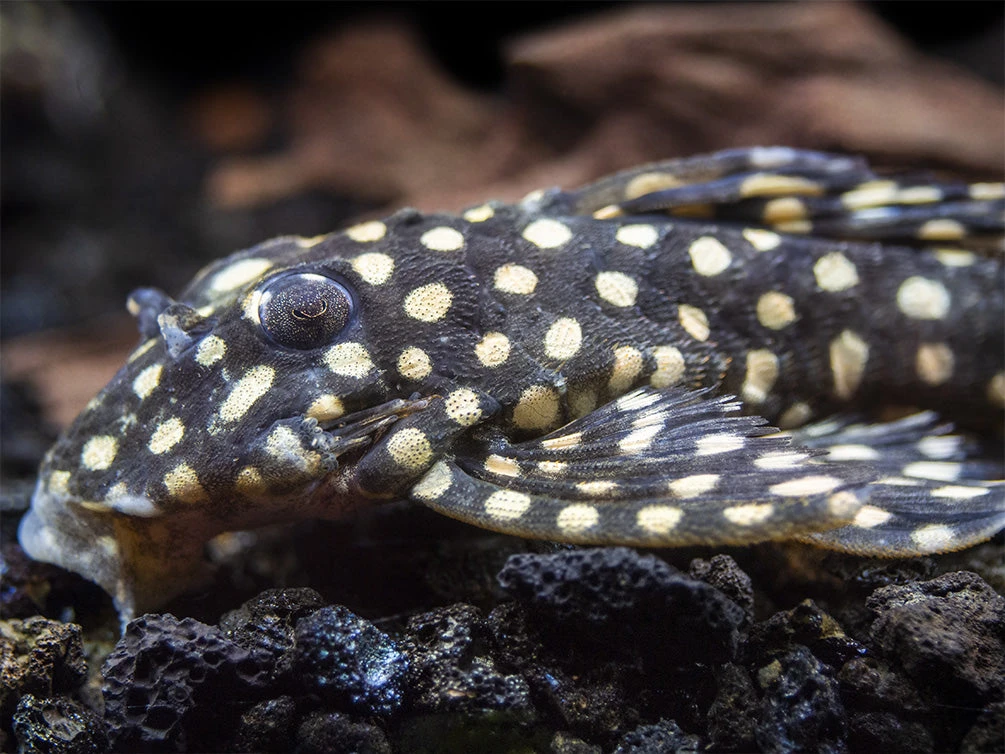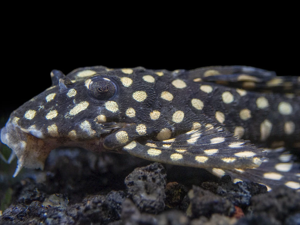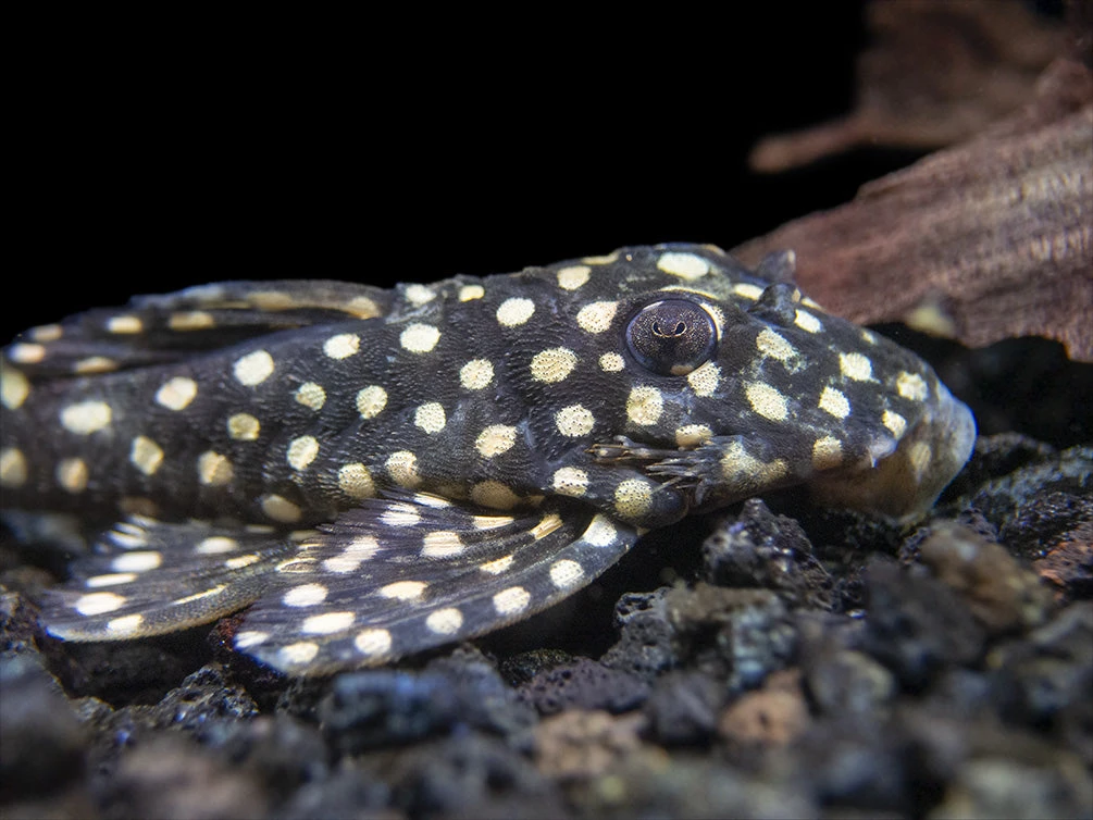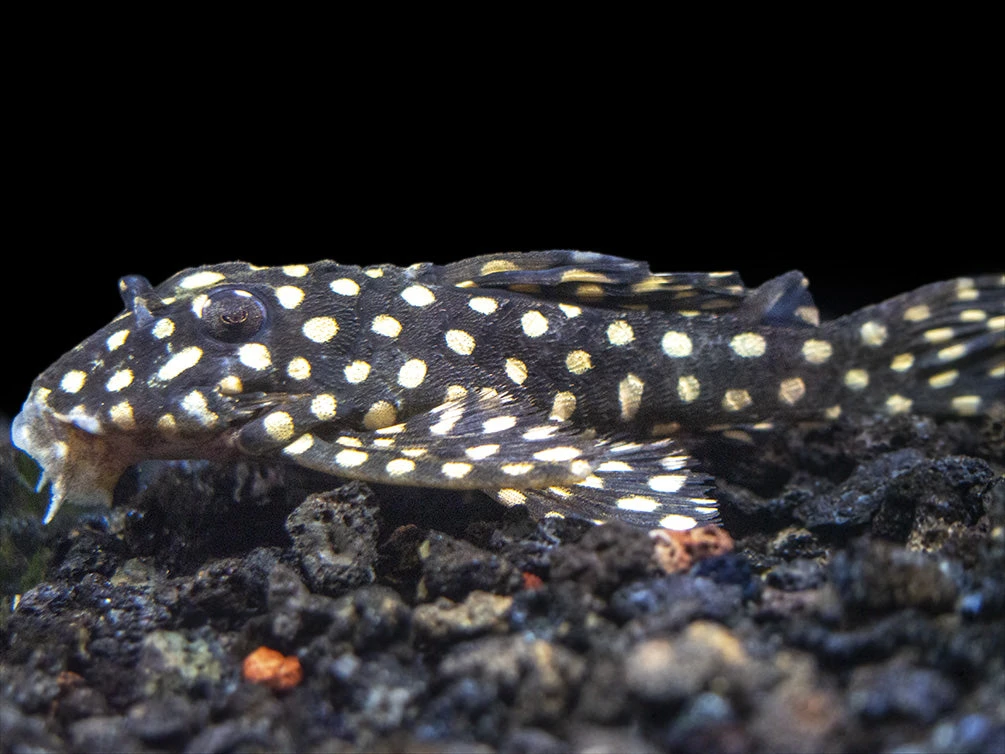The L471 White Spotted Dwarf Hypancistrus Pleco is among the smallest and few true nano “plecos,” and a very beautiful one at that! We are currently offering full-grown adult specimens!
