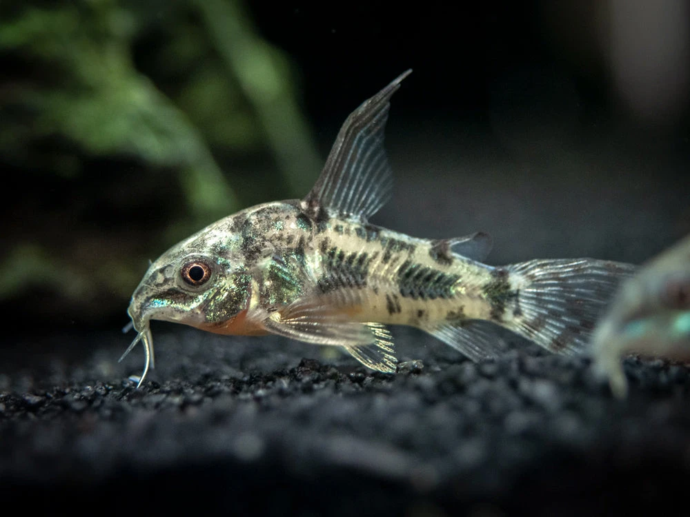 The Longfin Peppered Cory is a very elegant looking fish that is a peaceful scavenger for the nano, planted, and community aquarium!