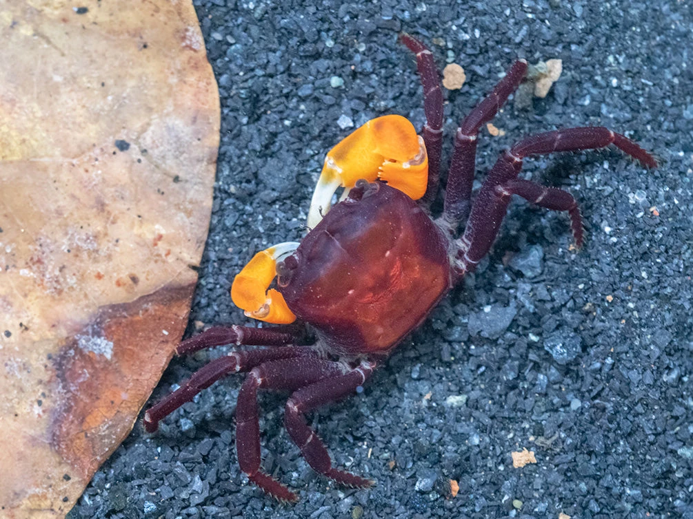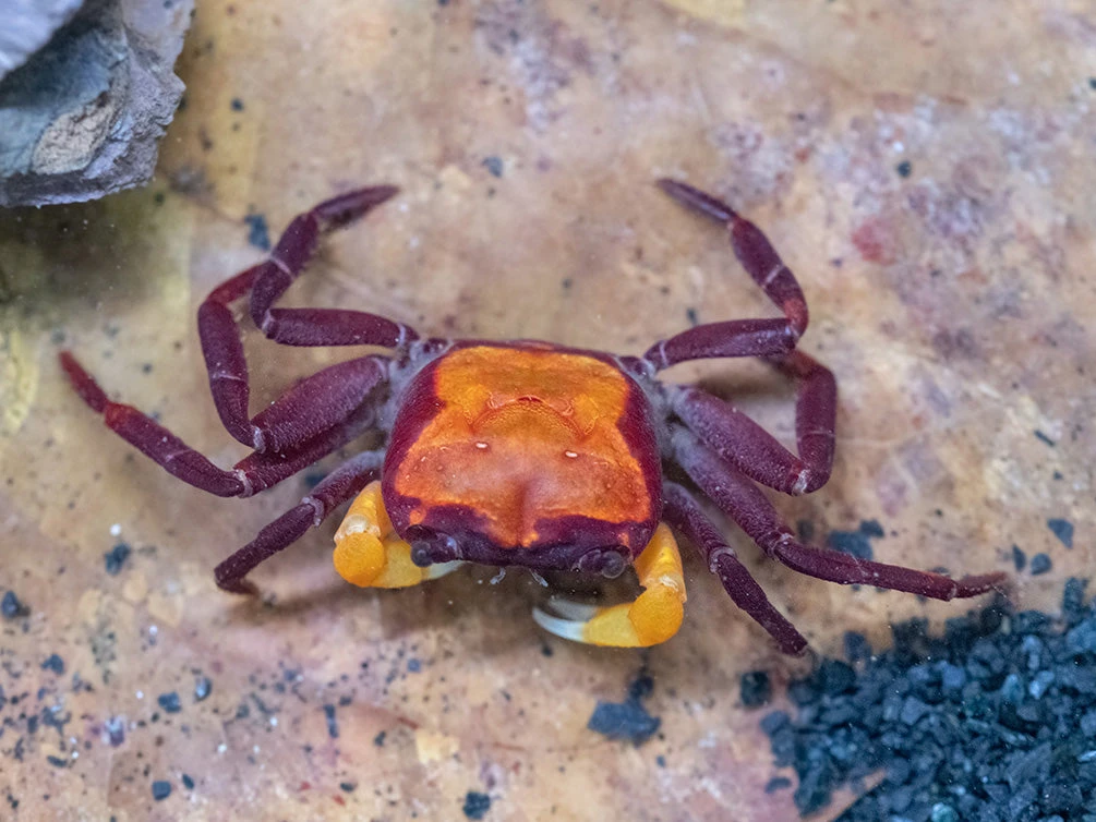 The Orange Arm Borneo Crab is an uncommon species that is beautifully marked and will often breed in the paludarium!