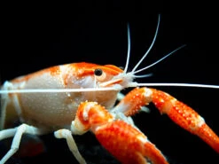 This beautiful crayfish displays incredible neon orange and white coloration!