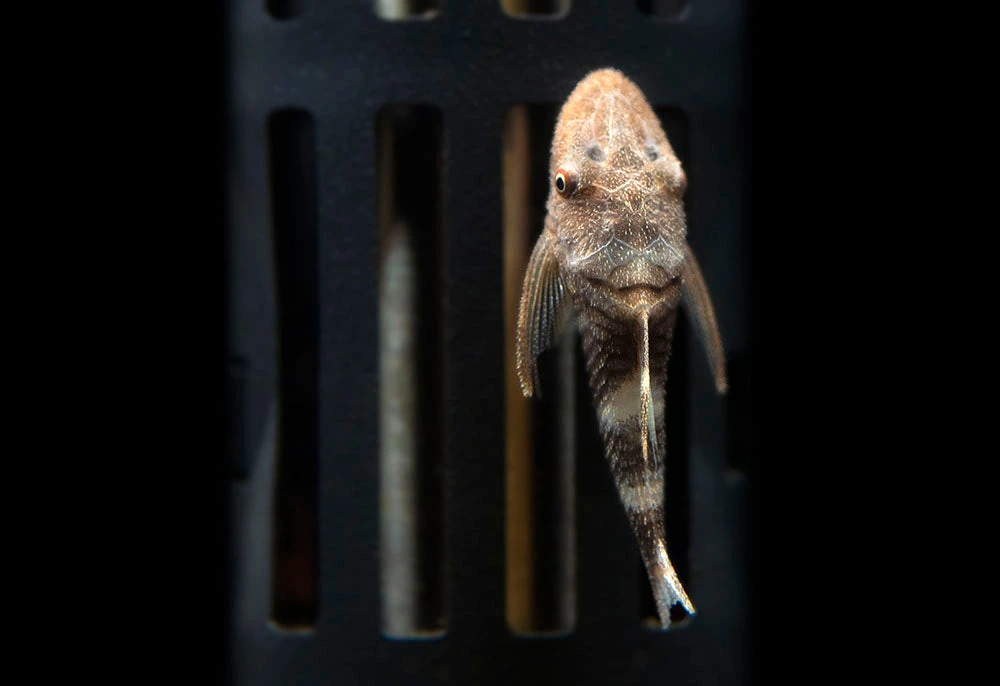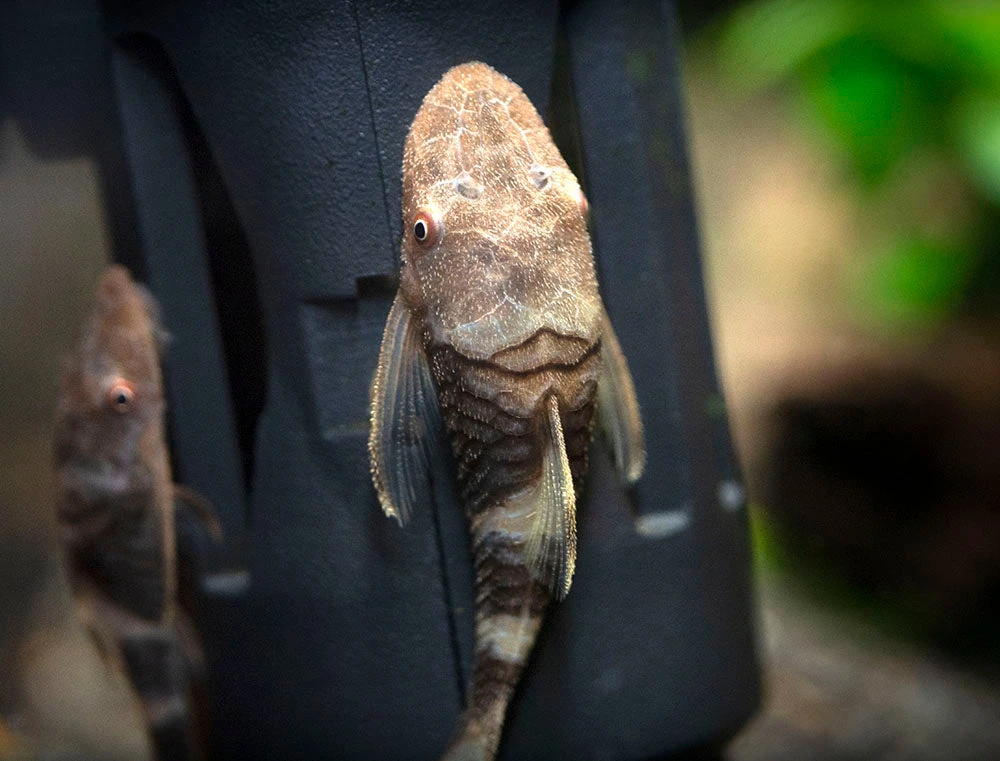 The Orange Zebra Otocinclus Catfish is primarily herbivorous and will continuously feed on algae in the aquarium, but it will not harm most ornamental plants. It is compatible with most other peaceful fish and invertebrates that enjoy the same water conditions, but it might inadvertently eat very small dwarf shrimp fry as it scavenges. Relatively high water flow and clean water are necessary for this species. Like most Otocinclus, the Orange Zebra Otocinclus Catfish is a schooling species and should be kept in groups.