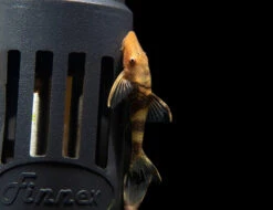 The Orange Zebra Otocinclus Catfish (Nannoptopoma sp. “Peru Orange”) is an extremely rare suckermouth catfish species from Peru. It is a very impressive nano fish and, like all of its close relatives, is a superb algae eater.Â