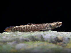The Palauan Riffle Dwarf Goby is a biofilm and algae grazer in nature. It is known to usually accept frozen meaty foods, but such foods should only be fed occasionally. This fish will also sometimes accept high-quality dry foods that are rich in plant matter, but it is absolutely essential that biofilm and algae are naturally available in the aquarium to ensure its long-term health or else it may slowly starve. As long as it is kept in a well-maintained, mature aquarium with good biofilm and algae growth as well as high water flow, the Palauan Riffle Dwarf Goby is a hardy and entertaining fish. It will not bother aquarium plants. In fact, Anubias species are an excellent plant to keep with this goby because Anubias can foster significant biofilm/algae growth in an aquarium with moderate to high lighting.