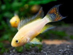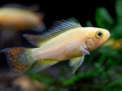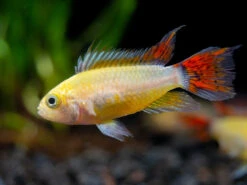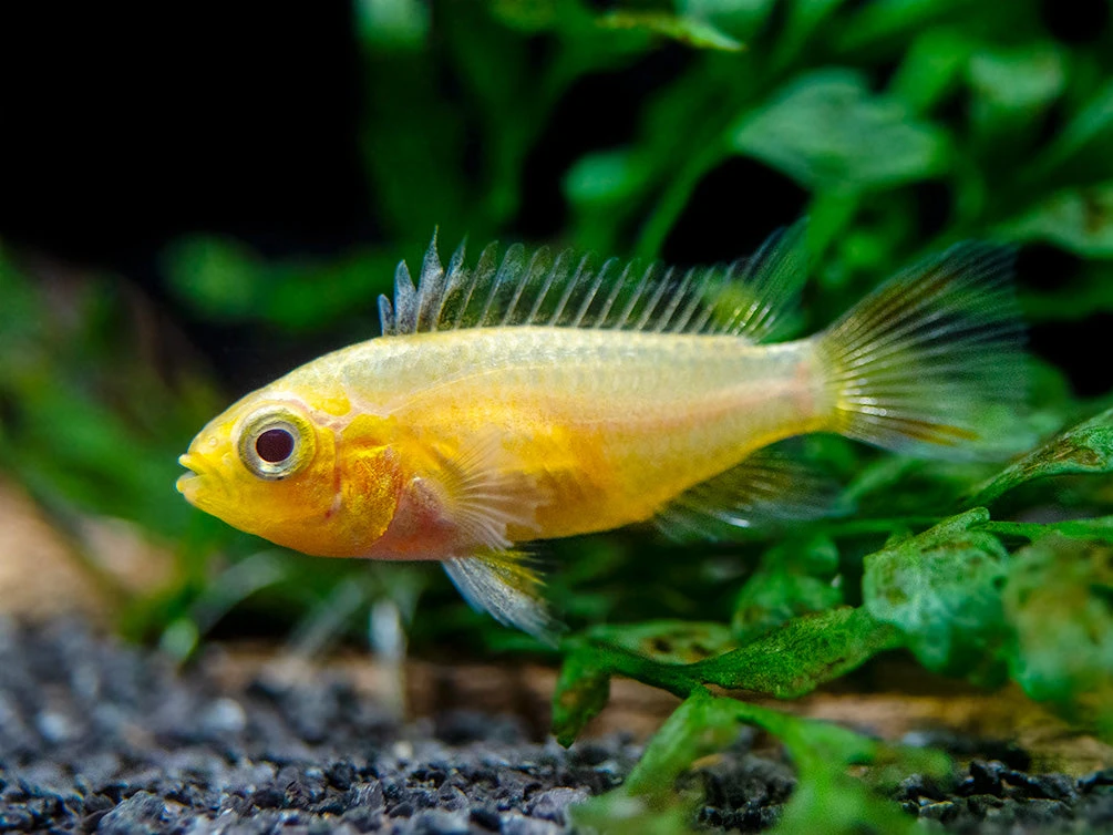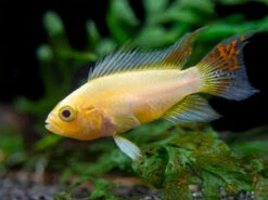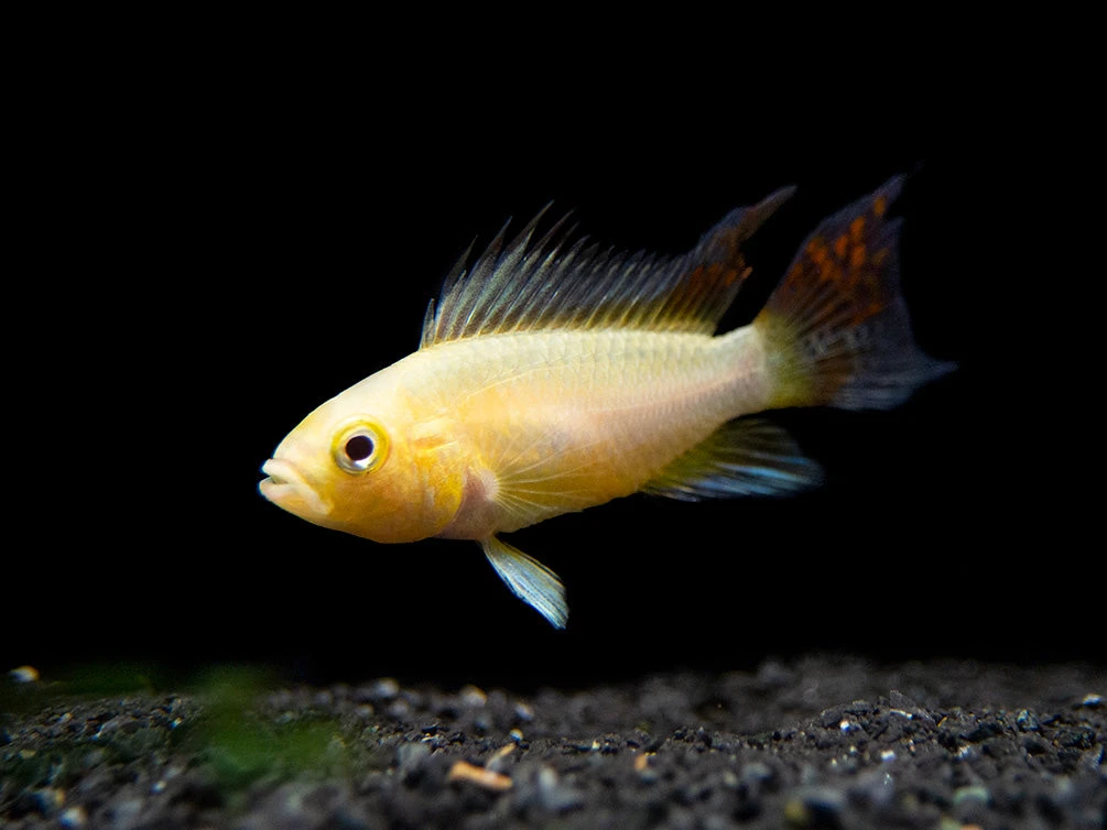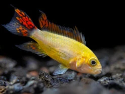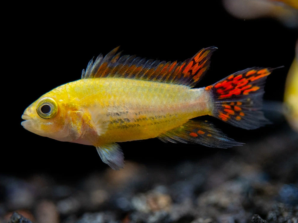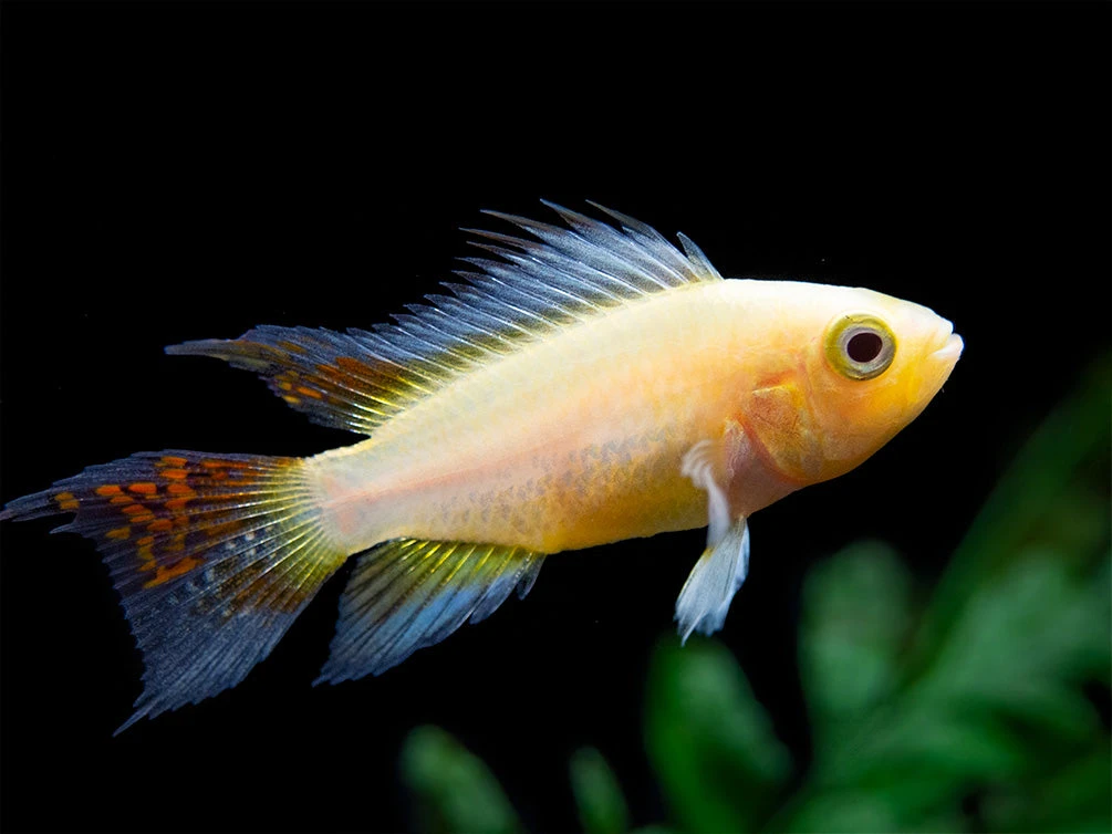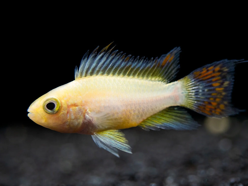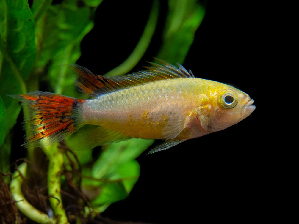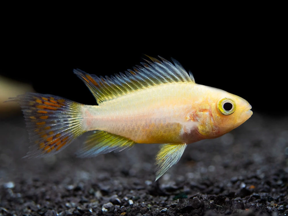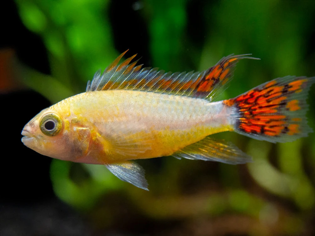 This beautiful dwarf cichlid is a relatively new color morph of the Cockatoo Dwarf Cichlid (Apistogramma cacatuoides)!