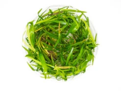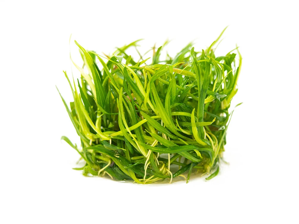 Pygmy Chain Sword (Helanthium tenellum, formerly known as Echinodorus tenellus) is a long-celebrated carpeting foreground plant in the aquarium hobby due to its ease of care and attractive grass-like appearance. This prolific plant can thrive under most levels of lighting and does not have any special requirements beyond nutrient-rich substrate (which is a requirement of most aquatic plants with roots). It propagates through runners and plantlets, which can be clipped and replanted elsewhere in the aquarium. It can also be planted emersed in terrariums, paludariums, and viquariums.