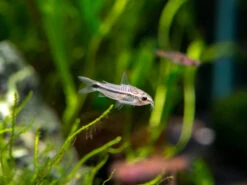The Pygmy Cory Catfish is a very peaceful schooling fish that is compatible with most nano aquarium animals. It might eat dwarf shrimp fry, but is generally safe to keep with adult dwarf shrimp. It is a classic scavenger and will inhabit and feed at the aquarium floor, which should be comprised of sand or smooth gravel. Very coarse substrate can damage its delicate barbels and underbelly. This fish is otherwise undemanding as it will accept most dry and frozen foods. It is adaptable to most tropical freshwater conditions as long as standard regular maintenance is performed and sudden changes are avoided.