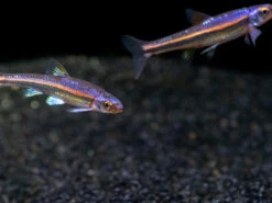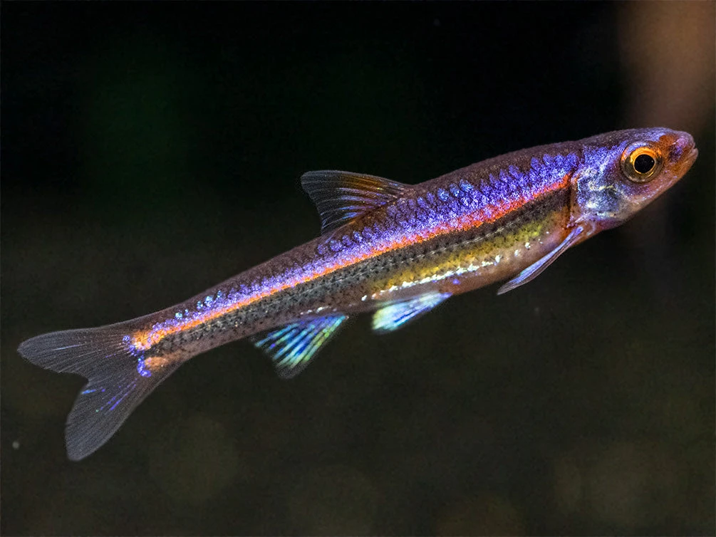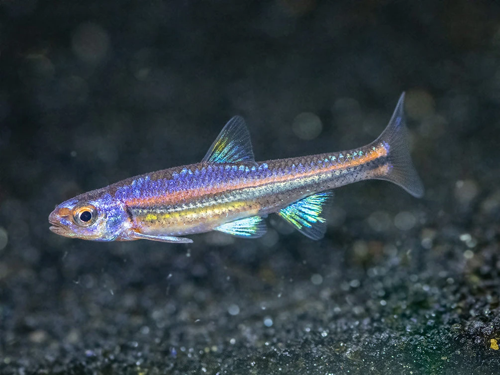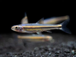 The Rainbow Shiner (Notropsis chrosomus) is a small cyprinid species that is native to the Southeasten United States. It is known for its incredible multi-coloration (particularly in males) during breeding season. It can be kept in a room temperature or subtropical aquarium and it is great for planted aquariums.Â