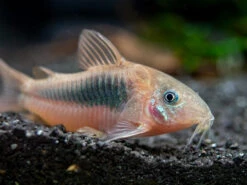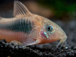 The Red Aeneus Cory Catfish (Corydoras aeneus) is a colorful variant of the classic Bronze Cory that is native to several countries in South America. It is becoming very well-known for the red-orange coloration that it develops across its body as it matures. It is a very animated, distinctively marked schooling fish that is perfect for the nano, community, and planted aquarium.